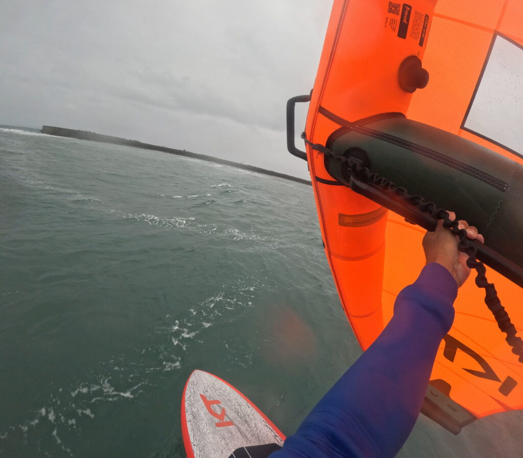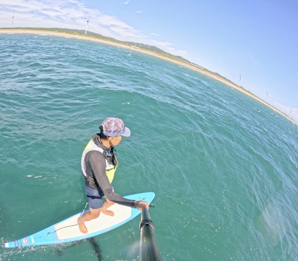 Gator LP 8'6で初のダウンウインド風は10mオーバーの南西の風、風向きはクロスオンショア海面はかなりグチャグチャでたまに太いうねりが風と別方向から来る難易度高めのコンディション。普段このコンディションだと浮かせるまでに少し時間が掛かるのですが... -